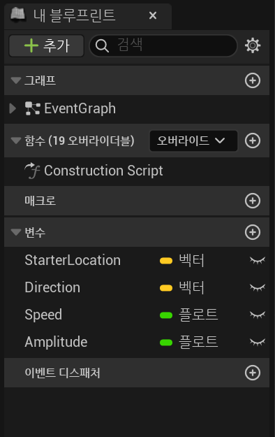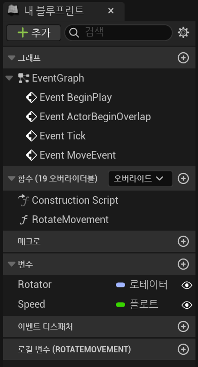 - Blueprint에서 변수 제작 (BPC_Platform_Rotate)