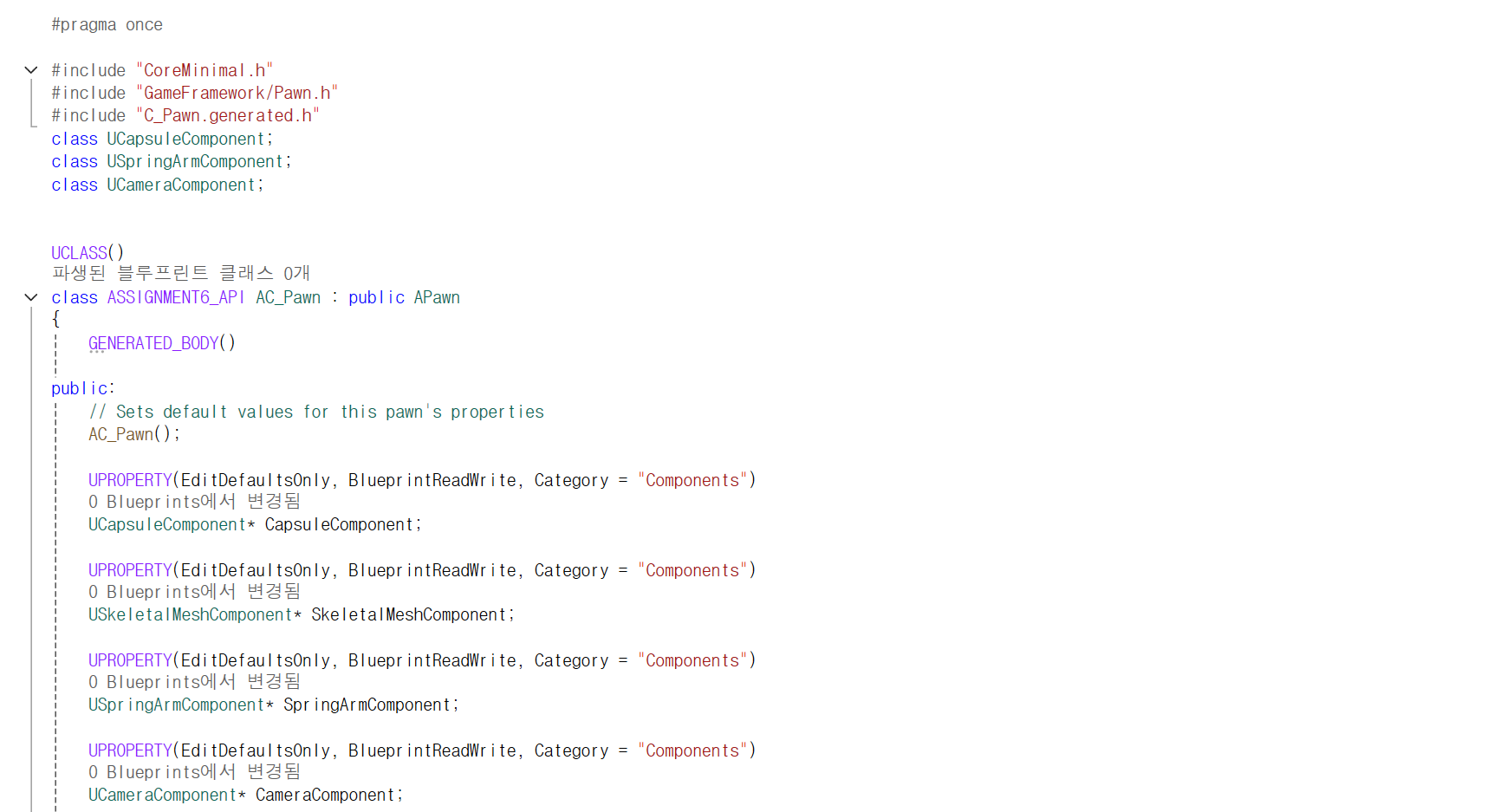 새로운 C++ 클래스 생성 - Pawn (Public)