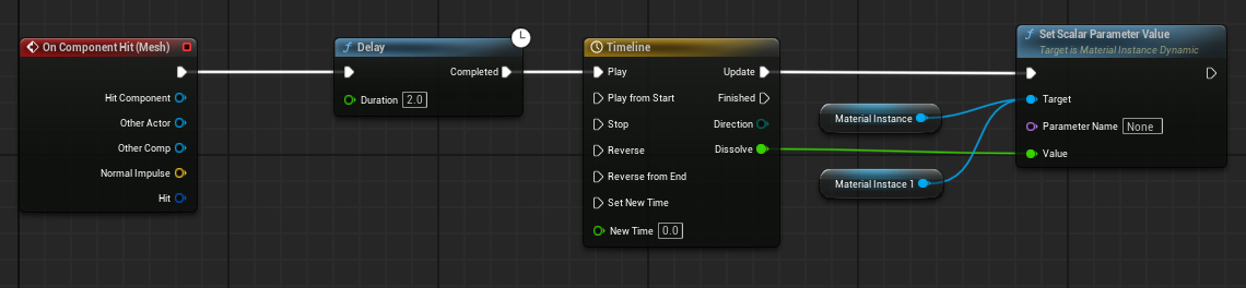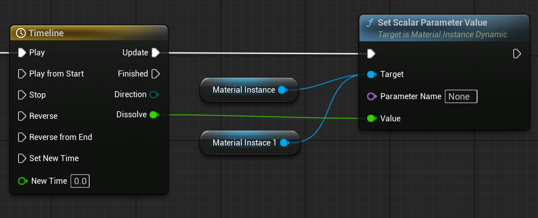 Timeline - Dissolve를 Set Scalar Parameter Value - Value에 추가