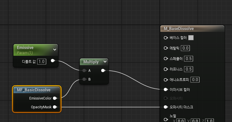 - Opacity mask와 Emissive color를 둘다 적용했을 때