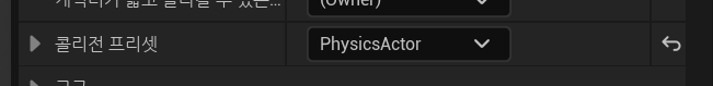 MeshComponent의 콜리전 프리셋 PhysicsActor로 변경