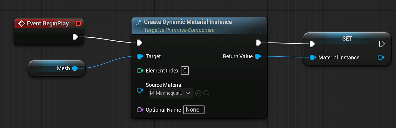 Return Value - 변수로 승격 - 변수명 : MaterialInstance
