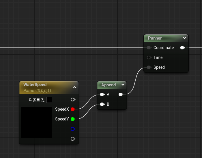 속도를 조절하기 위한 Parameter를 Append를 사용하여 Panner의 Speed에 연결