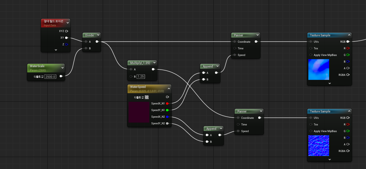 두 개의 Normal에 각각 적용하기 위한 WaterSpeed 변수 이름 변경