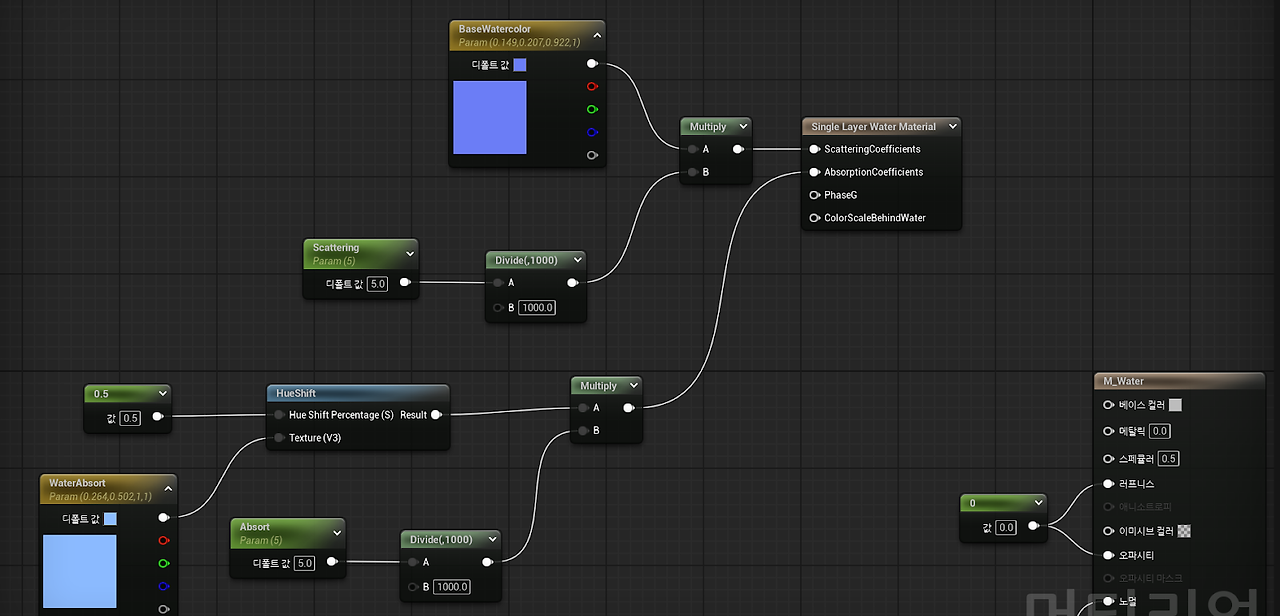 복사한 노드의 Parameter 이름 변경 (WaterScaleDistance)