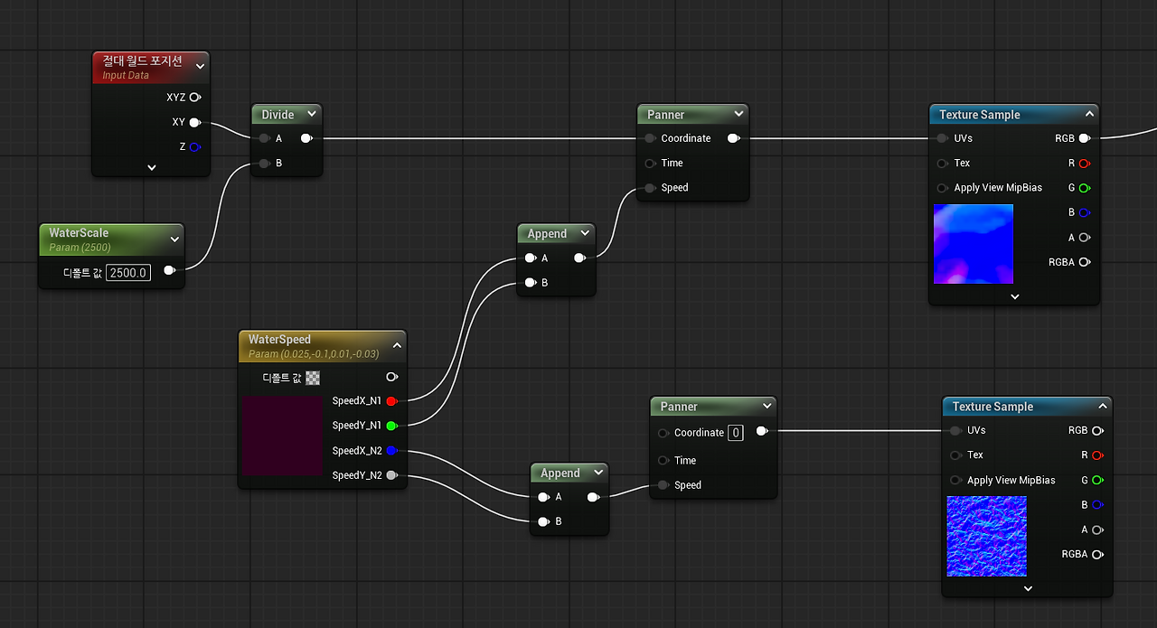 변수 WaterScaleDistance로 Normal 사이 거리값 조절