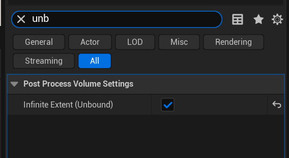 레벨에 Post Process Volume 배치 - 위치값 초기화 - Infinite Extent (Unbound)