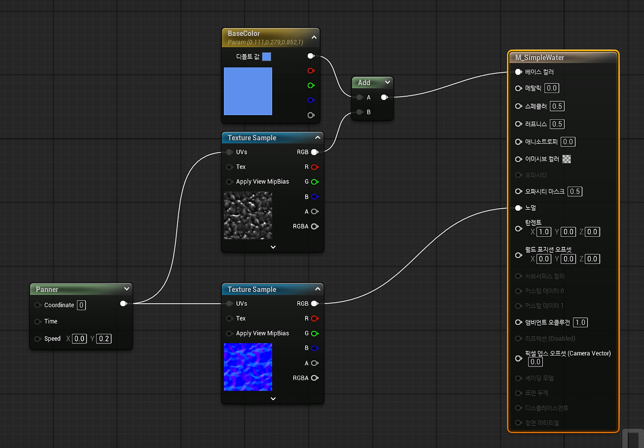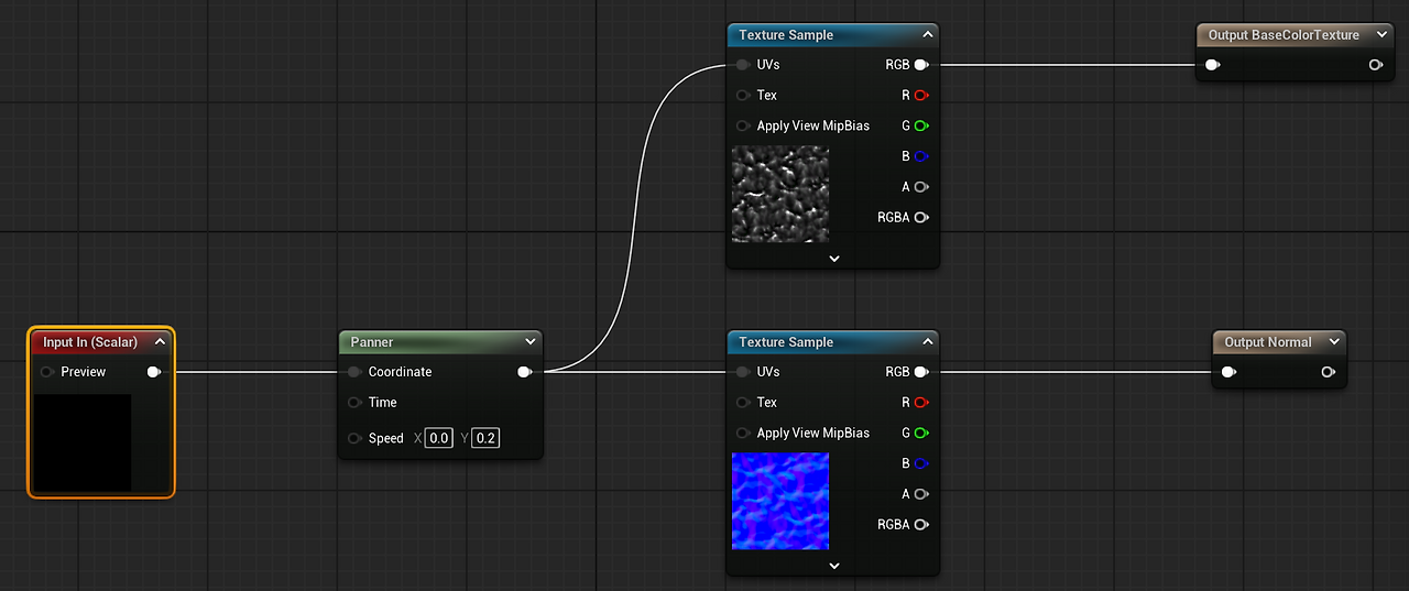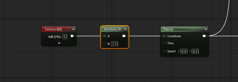 * Panner : Speed (X, Y)에 속도를 넣어 텍스쳐를 움직이게 만든다.