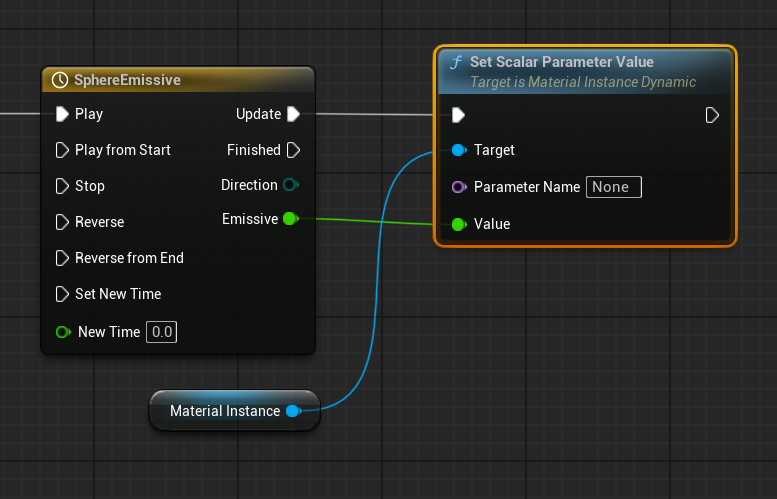 Material Instance - Set Scalar Parameter Value ( Parameter Name “Emissive”)