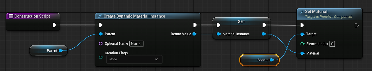Return Value 우클릭 - 변수로 승격 - 변수 rename : Material Instance