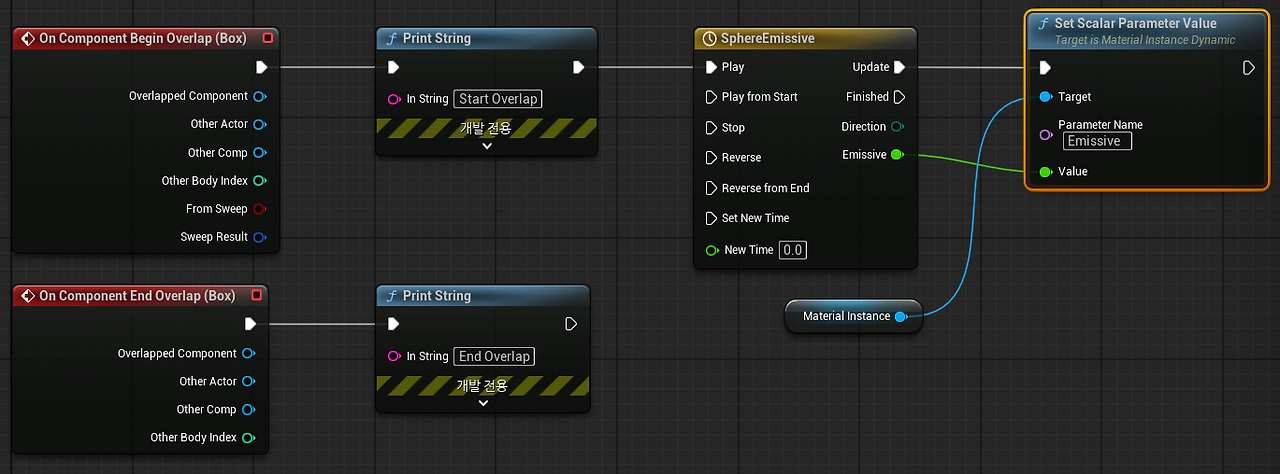 On Component End Overlap을 Timeline의 Reverse에 연결하여 반복시키기기