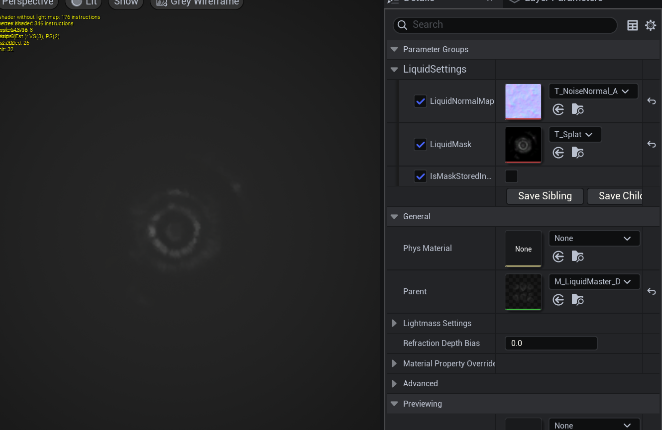 Rain Splash Small에 사용한 Material Instance 복제 ( Rain Splash Big, Rain Splash Variations)