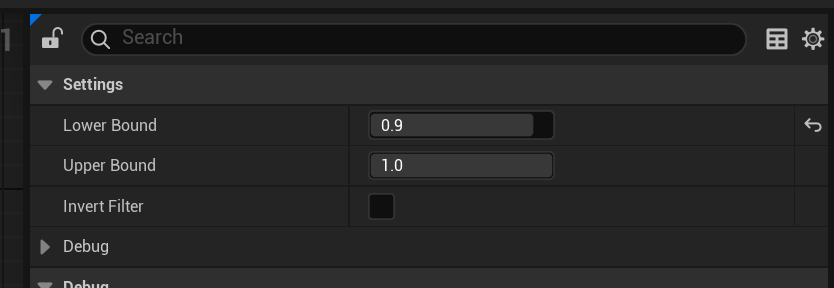 Lower Bound의 값을 0.9로 설정하고, Debug를 Density Filter로 변경한다.