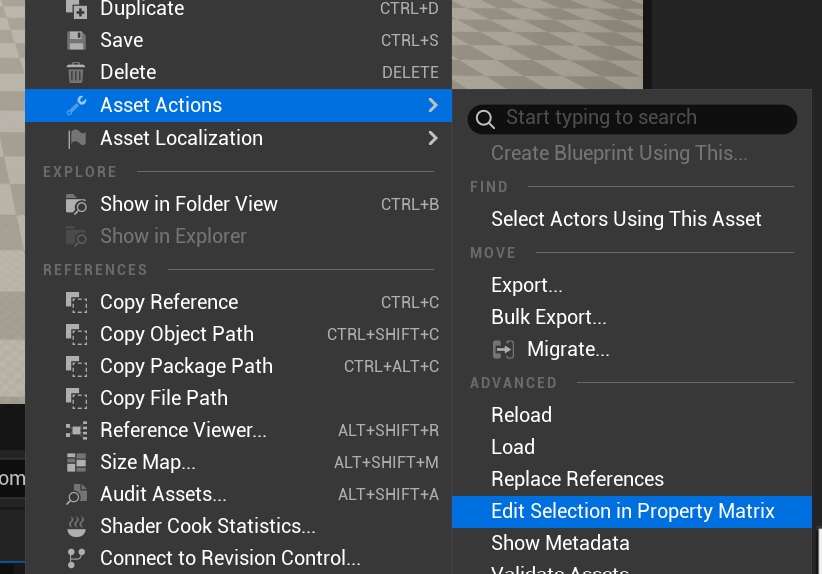 Mesh 위에 올릴 Asset들을 선택하여 Asset Actions - Edit Selection in Property Matrix