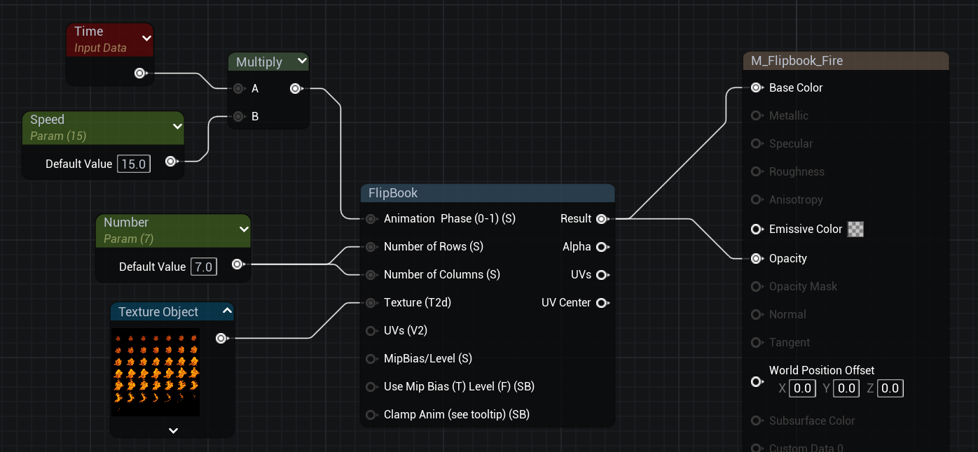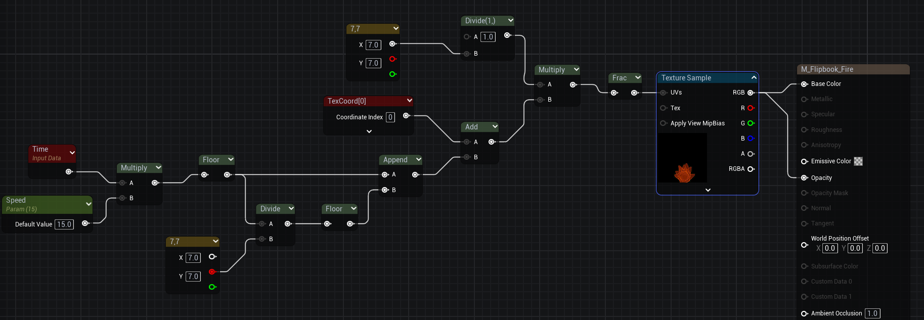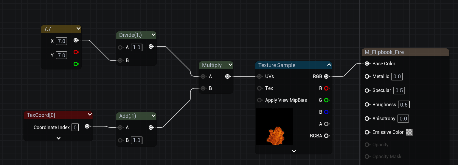 Flipbook texture 파일의 이미지 개수만큼 x, y 값에 넣는다 (7 x 7)