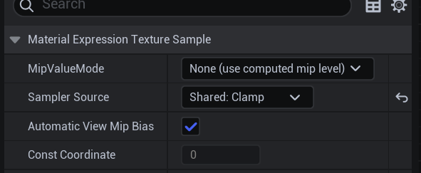 TextureSample - Details - Sampler Source : Shared: Clamp