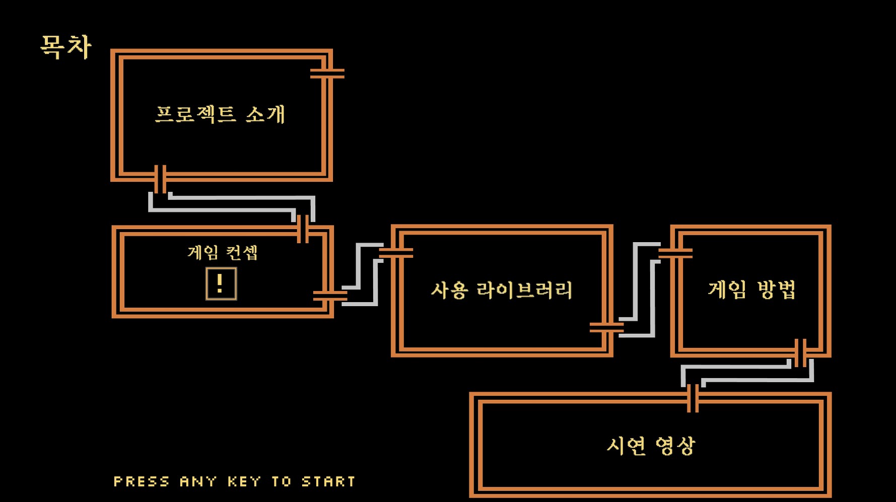 ppt는 빈티지 게임 컨셉으로 목차를 맵으로 제작하여 던전을 이동하는 형식으로 제작했다.